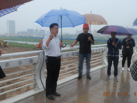 县委书记董冰和水利局长孟局长在太康湖工地